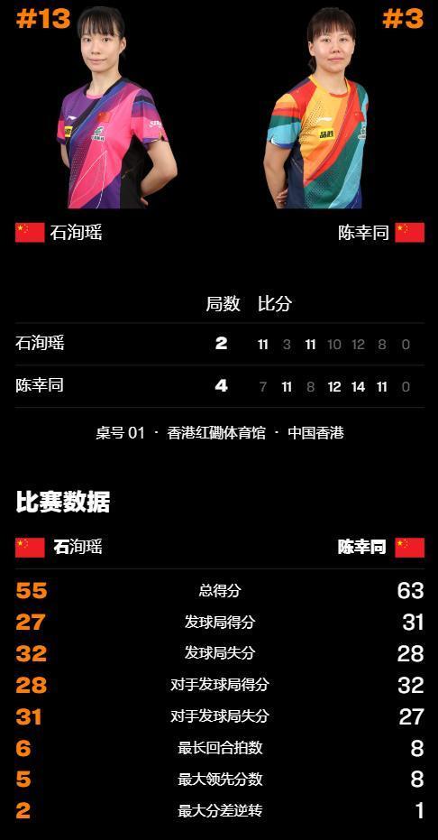 第二局比赛陈幸同打得愈加积极,诓骗前三板高质料的发动,开局就确立起了3-0的跳跃,濒临窘境石洵瑶如故通过我方打开大合的病笃,连追3分抹平了分差,可惜接下来相接邪恶,让陈幸同再次拉开比分,以11-3扳平大比分。